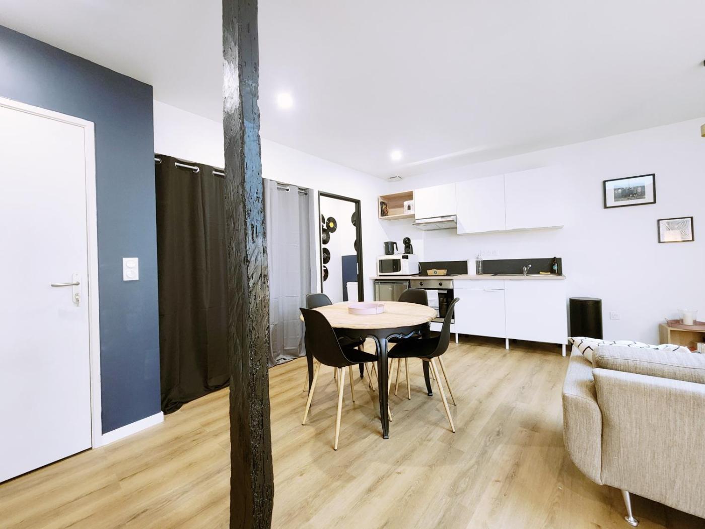 Appartement 1 Chambre. Featuring a private entrance, this apartment also consists of 1 bedroom, a seating area and 1 bathroom with a walk-in shower and a hairdryer. The well-fitted kitchen features a stovetop, a refrigerator, kitchenware and an oven. This apartment has a tea and coffee maker, a dining area, a flat-screen TV and a terrace. The unit offers 1 bed.