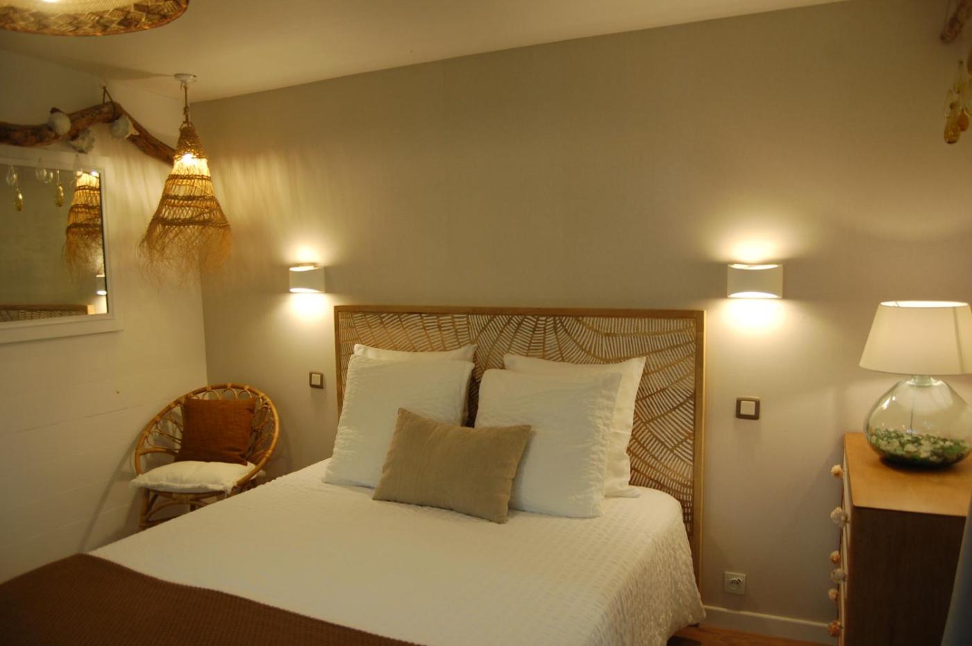 Chambre Double avec Salle de Bains Privative. Cette chambre double spacieuse dispose dune entrée privée, de murs insonorisés, dune terrasse avec vue sur le jardin et dune salle de bains privative avec une douche à litalienne. Ce logement comprend 1 lit.
