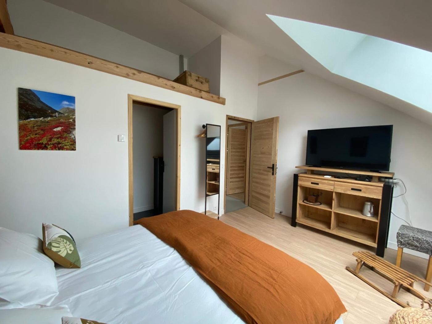 Chambre Double. Providing free toiletries, this double room includes a private bathroom with a walk-in shower and a hairdryer. The double room provides a high chair for children, parquet floors, heating and a flat-screen TV. ;