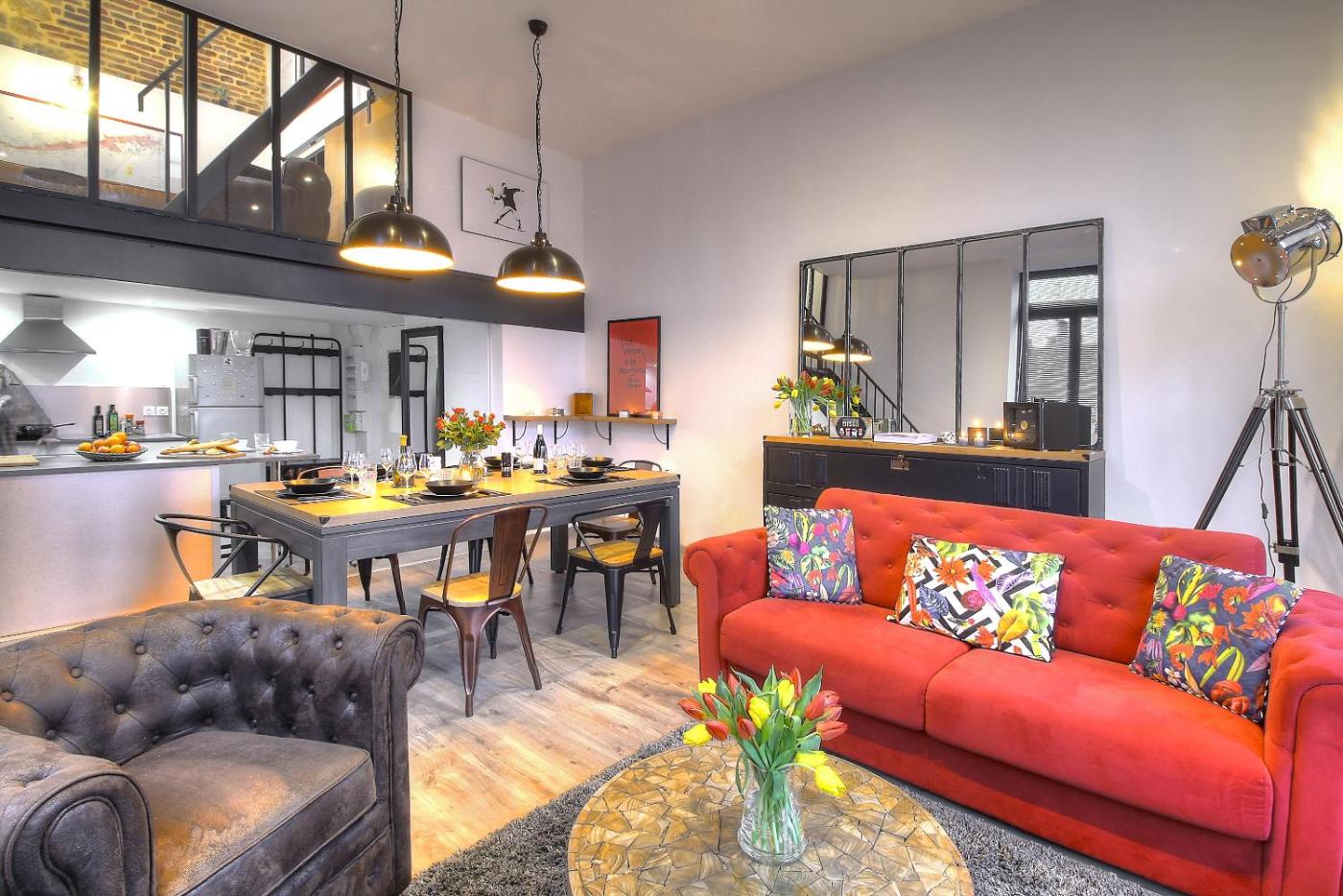 Loft. This spacious apartment features 1 living room, 2 separate bedrooms and 1 bathroom with a bath and free toiletries. In the fully equipped kitchen, guests will find a stovetop, a refrigerator, a dishwasher and kitchenware. The apartment features a washing machine, a private entrance, soundproof walls, a flat-screen TV with cable channels, as well as city views. The unit has 3 beds.