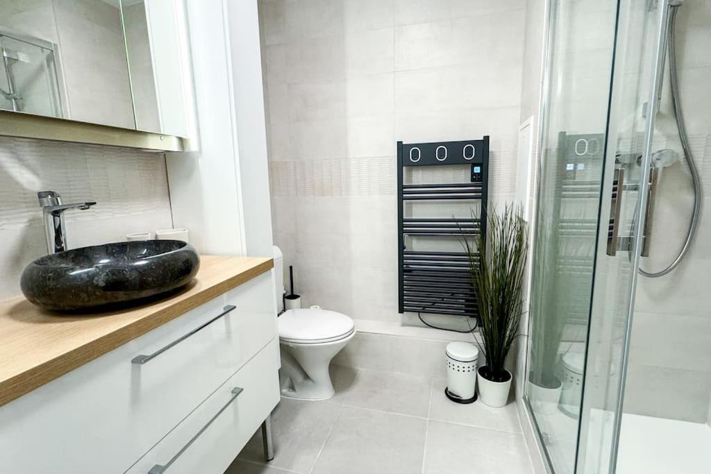 Appartement 2 Chambres. This apartment features a kitchen, a seating area, 2 separate bedrooms and 1 bathroom with a shower and a hairdryer. The well-equipped kitchen has a stovetop, a refrigerator, a dishwasher and kitchenware. Boasting a balcony, this apartment also features a washing machine, a tea and coffee maker and a flat-screen TV. The unit has 3 beds.