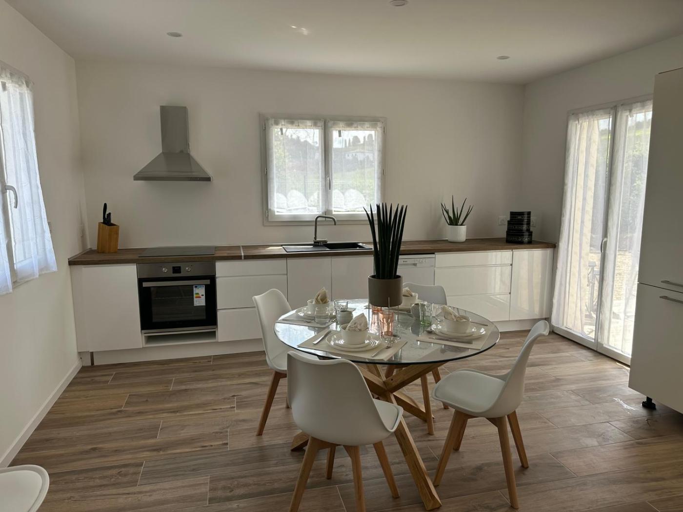 Maison 3 Chambres. Featuring 3 bedrooms and 1 bathroom with a walk-in shower, this holiday home offers a well-fitted kitchen and a terrace. Guests will find a refrigerator, a dishwasher, kitchenware and a microwave in the kitchen. The holiday home also offers a barbecue. The air-conditioned holiday home provides a flat-screen TV, a washing machine, a coffee machine, a dining area as well as garden views. The unit has 4 beds.
