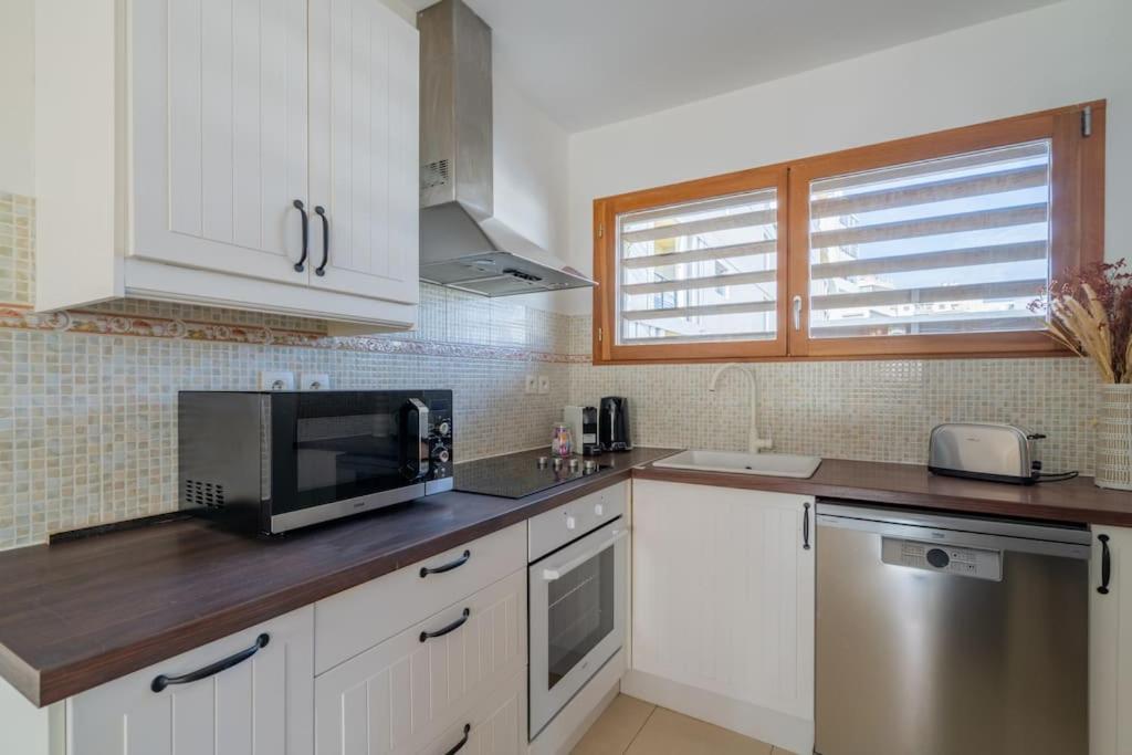Appartement 2 Chambres. La kitchenette bien équipée est pourvue d’un réfrigérateur, d’un four et d’un micro-ondes. Cet appartement spacieux dispose de la climatisation, d’un lave-linge, d’un plateaubouilloire et d’une terrasse. Ce logement comprend 4 lits.