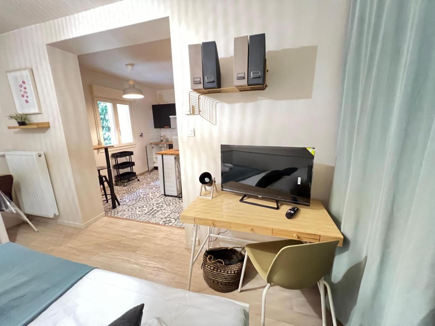 Appartement 1 Chambre. Featuring 1 bedroom, this apartment offers 1 bathroom with a shower, a seating area and terraceyou can relax. Guests can make meals in the kitchen that is fitted with a stovetop, a refrigerator, kitchenware and a microwave. The apartment offers a flat-screen TV, a washing machine, a tea and coffee maker, a dining area as well as garden views. The unit has 1 bed.