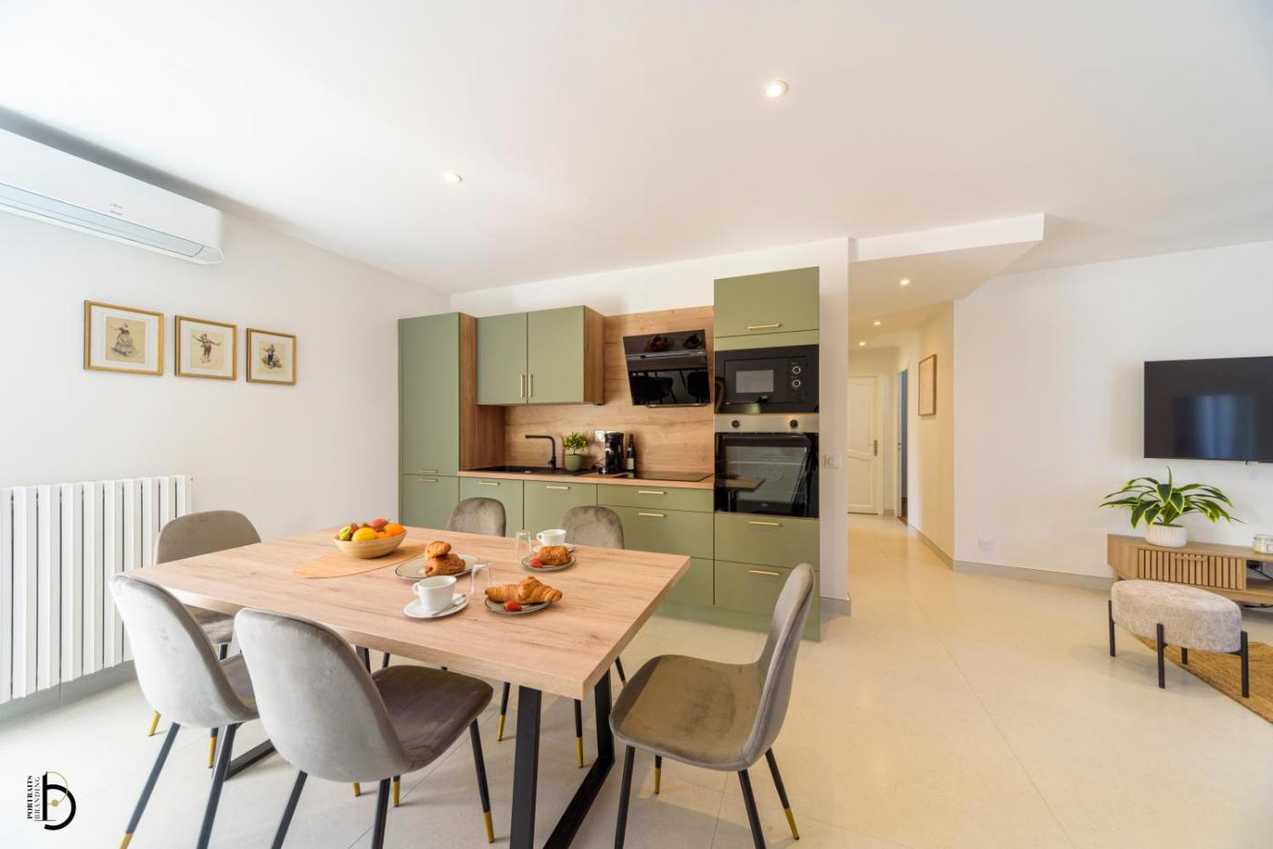 Appartement 3 Chambres. This spacious apartment comprises 1 living room, 3 separate bedrooms and 1 bathroom with a shower and a hairdryer. Guests will find a refrigerator, a dishwasher, kitchenware and an oven in the kitchen. The apartment also provides guests with a barbecue. The air-conditioned apartment provides a flat-screen TV with streaming services, a washing machine, soundproof walls, a tea and coffee maker as well as garden views. The unit offers 4 beds.