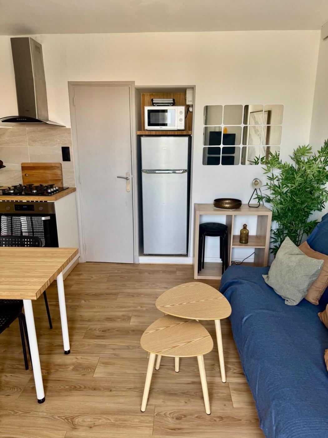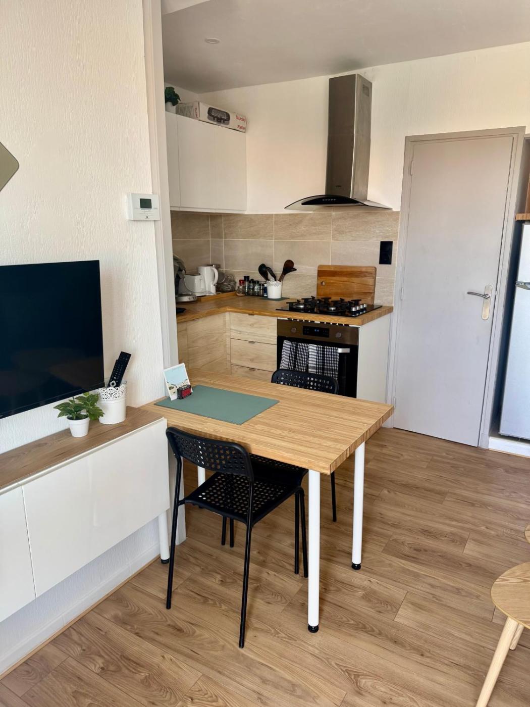 Cet appartement se compose de 1 chambre, dun salon, dune cuisine entièrement équipée avec un réfrigérateur et une machine à café, ainsi que de 1 salle de bains avec une douche et un sèche-cheveux. Une télévision à écran plat est à votre disposition.