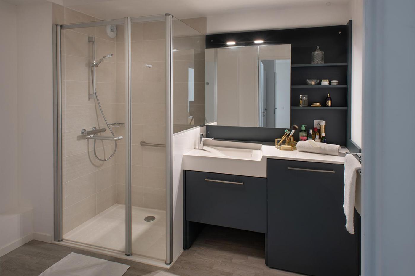 Appartement 1 Chambre. The apartment has 1 bedroom and 1 bathroom with a shower and free toiletries. Meals can be prepared in the well-fitted kitchenette, which features a stovetop, a refrigerator, kitchenware and a microwave. This wheelchair accessible apartment features soundproof walls, a seating area with a flat-screen TV and a roll-in shower. The unit has 1 bed. ;