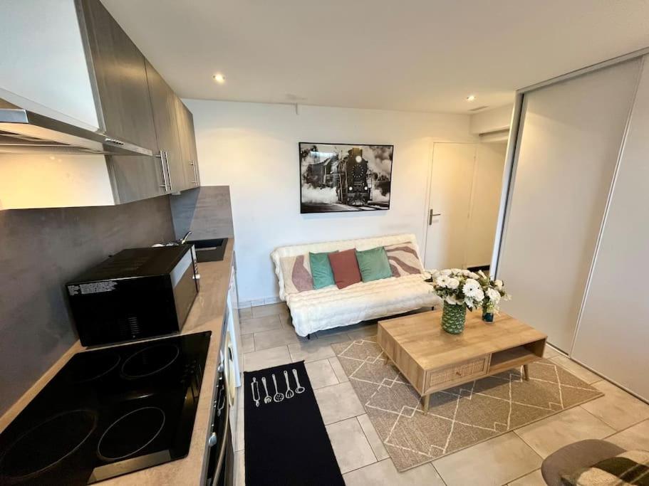 Appartement 1 Chambre. The apartment has 1 bedroom, 1 bathroom and a kitchen. The apartments kitchen is available for cooking and storing food. The apartment offers a washing machine and heating. The unit has 2 beds.
