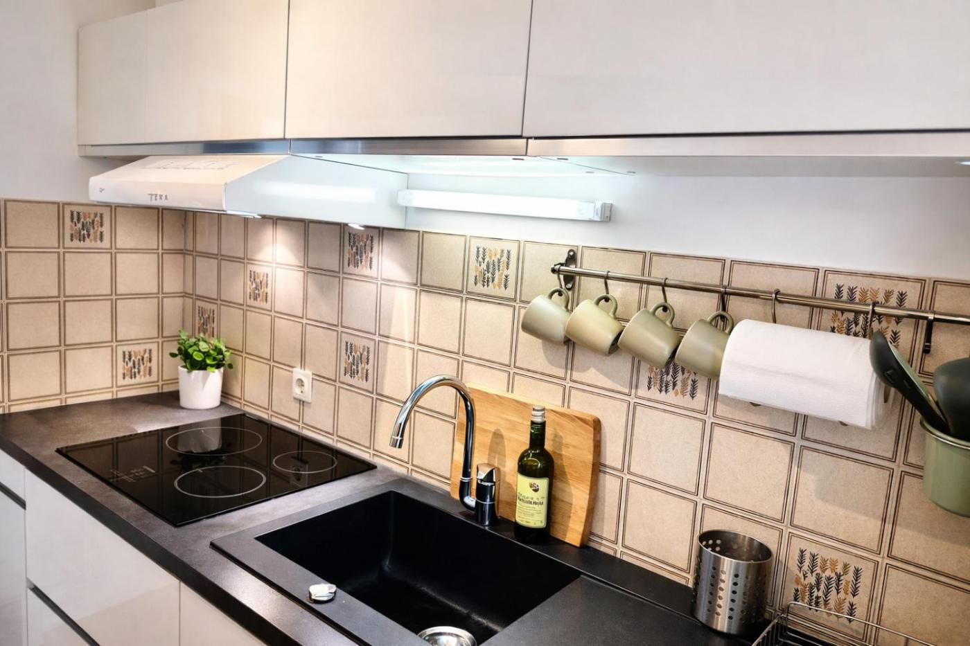 Cet appartement avec climatisation se compose de 1 chambre, dun salon, dune cuisine entièrement équipée avec un réfrigérateur et une machine à café, ainsi que de 1 salle de bains avec un bain à remous et des articles de toilette gratuits. Des serviettes et du linge de lit sont disponibles.