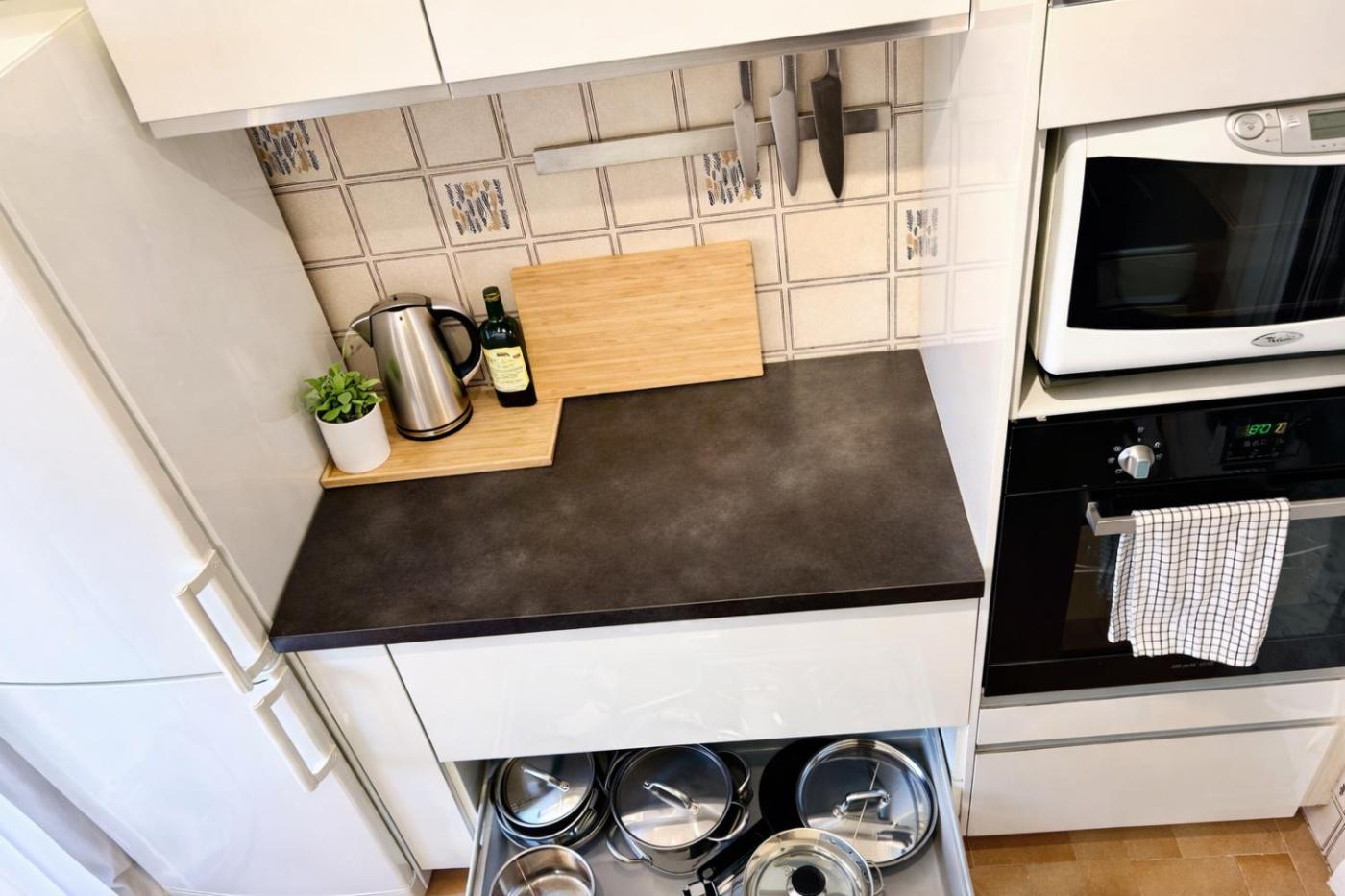 Appartement avec Terrasse. Guests will have a special experience as the apartment provides a hot tub. This apartment consists of 1 living room, 1 separate bedroom and 1 bathroom with a bath and free toiletries. Guests can make meals in the kitchen that is equipped with a refrigerator, an oven, a microwave and an electric kettle. This air-conditioned apartment comprises a dining area, a flat-screen TV with streaming services a washing machine and a terrace. The unit offers 2 beds.