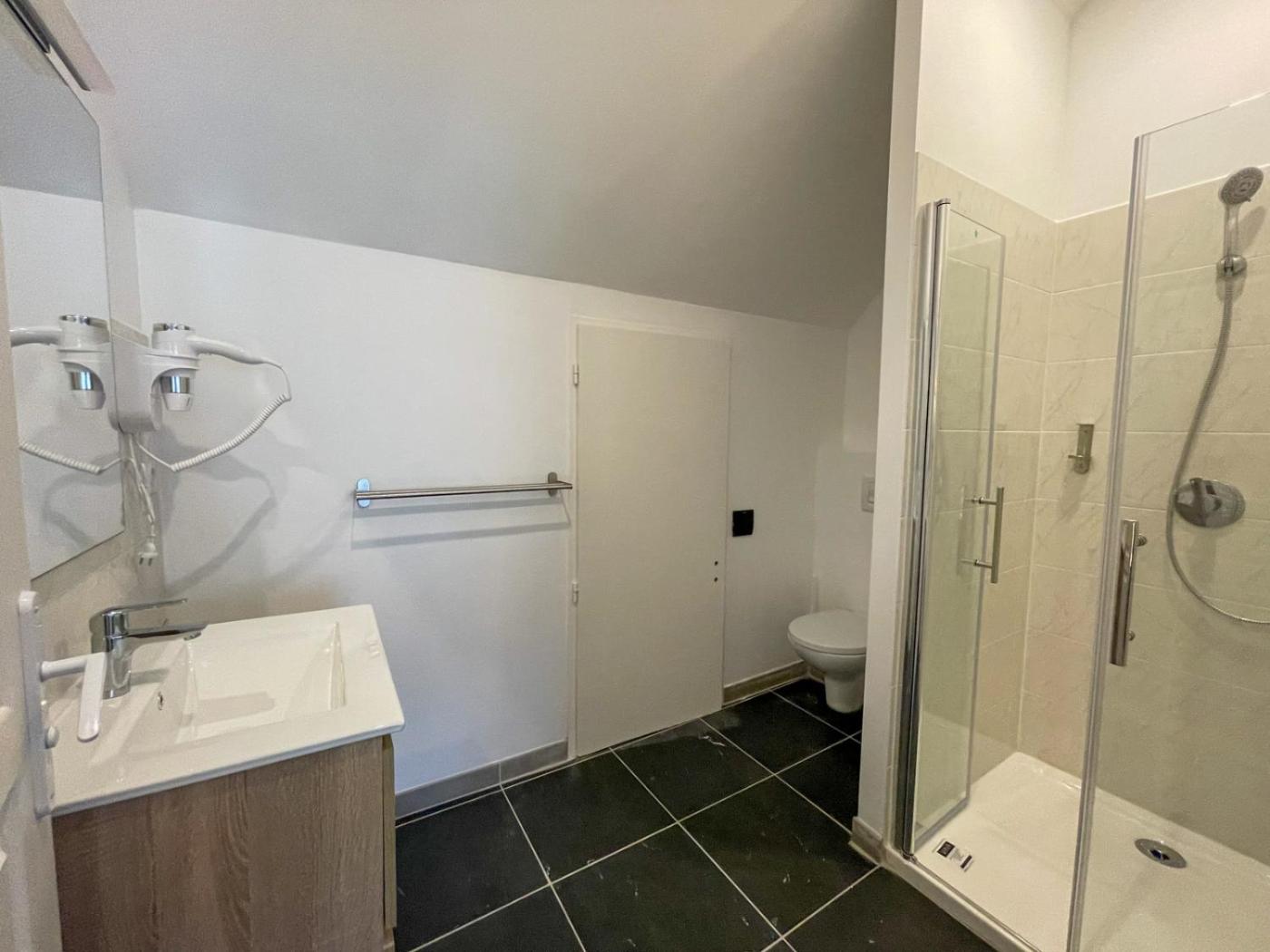 Chambre Familiale. Cette chambre familiale possède une salle de bains privative munie d’une douche, d’un sèche-cheveux et d’articles de toilette gratuits. La chambre familiale dispose dune armoire, dune bouilloire électrique, de moquette et dune télévision à écran plat. Le logement comporte 2 lits. ;