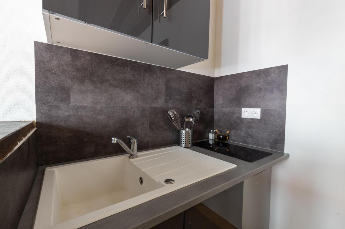Cet appartement se compose de 1 chambre, dun salon, dune kitchenette entièrement équipée avec un réfrigérateur et une machine à café, ainsi que de 1 salle de bains avec une douche. Cet hébergement met à votre disposition des serviettes et du linge de lit.