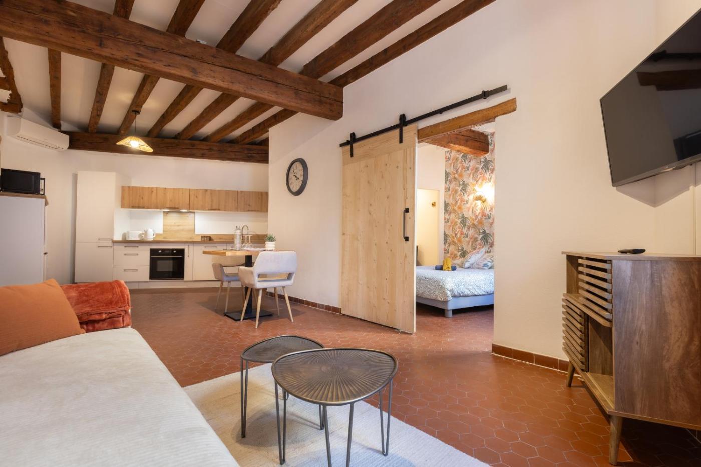 Appartement 1 Chambre Supérieur. Featuring a private entrance, this air-conditioned apartment comprises 1 bedroom and 1 bathroom with a walk-in shower. Meals can be prepared in the well-fitted kitchen, which comes with a stovetop, a dishwasher, kitchenware and an oven. The apartment provides a washing machine, a tea and coffee maker, a seating area, a flat-screen TV, as well as city views. The unit offers 1 bed.