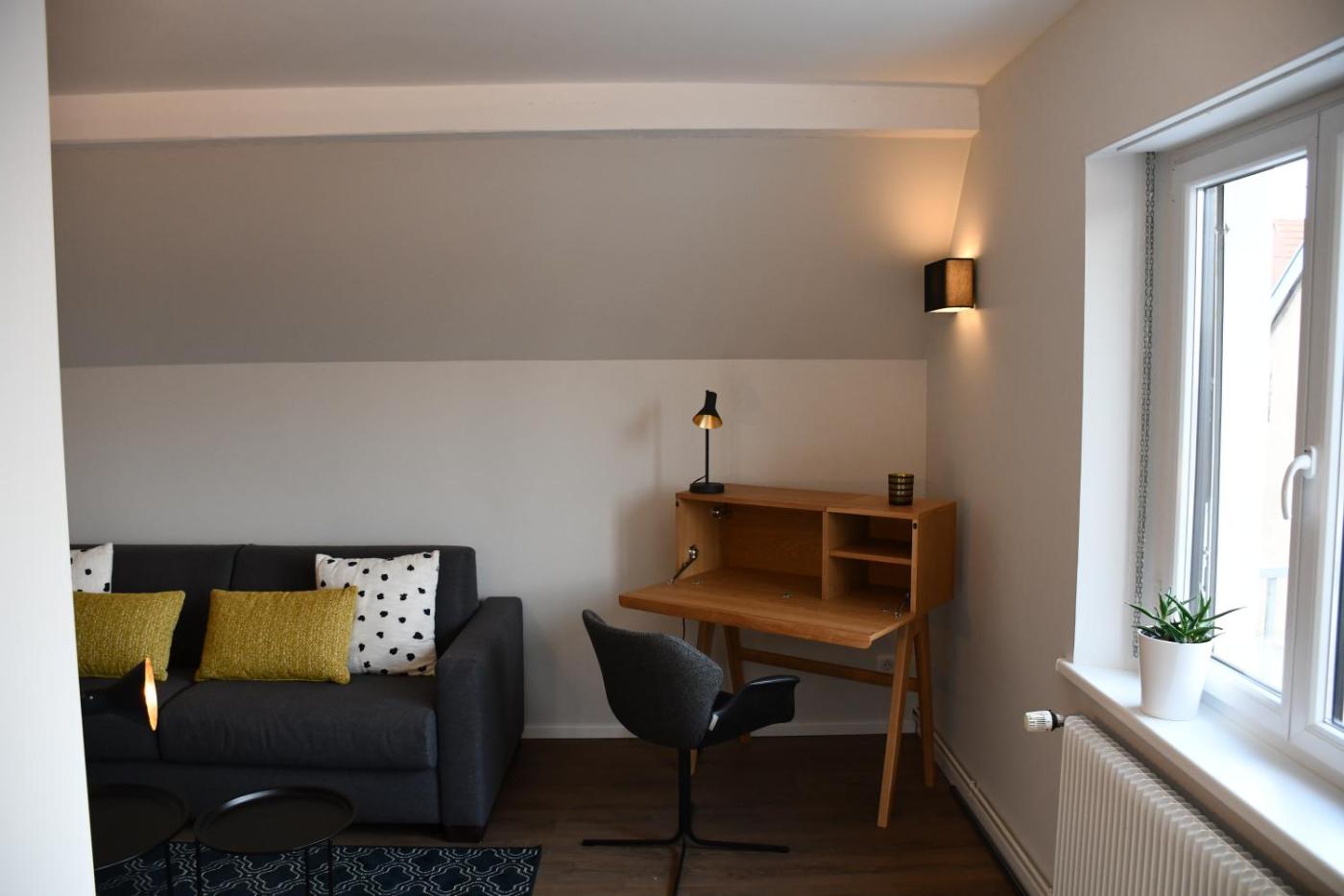 Cet appartement se compose de 1 chambre, dun salon, dune cuisine entièrement équipée avec un réfrigérateur et une machine à café, ainsi que de 1 salle de bains avec une douche et des articles de toilette gratuits. Cet hébergement 3 étoiles propose un parking privé gratuit ainsi qu’une connexion Wi-Fi gratuite dans l’ensemble de ses locaux.